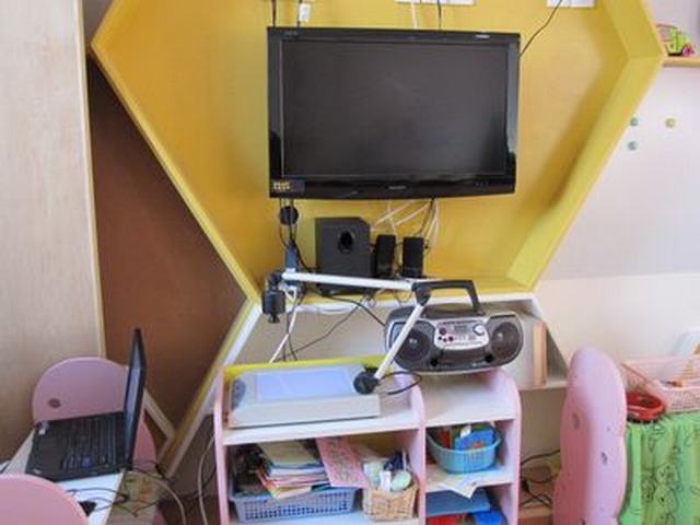 为各班配置了笔记本电脑、液晶电视机、CD磁带U盘一体机、视频展示台、数码相机,从而完成了各班小型多媒体教室的建设工作。教师不用再把孩子带到多媒体教室,在教室里就可以开展多媒体教学,带领孩子畅游网海,获取知识,为信息技术与课程整合创设了良好的硬件环境。