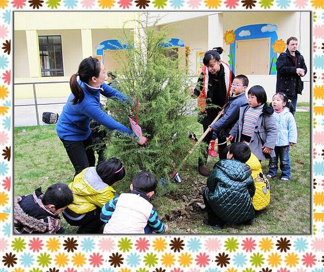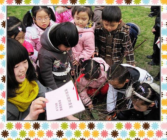 3月12日植树节当天,中央花园幼儿园各班小朋友在老师的带领下,聚集在幼儿园小花园里,师生合作齐动手,开展了“我与小树共成长”的班树种植活动。活动中,小朋友兴高采烈,忙着给小树铲土、浇水,挂树牌,了解了树名、生活习性。看着自己亲手种植的小树挺拔屹立,孩子们高兴得欢呼雀跃。