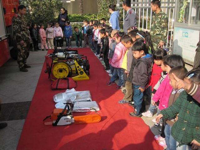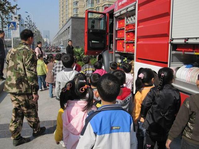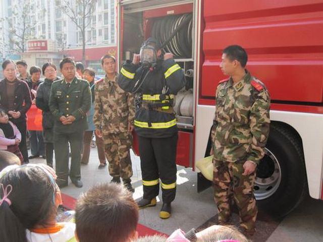 上午9点,武警中队的消防车开进中央花园幼儿园和中大班全体师生零距离接触。消防员叔叔向小朋友们讲解了消防车辆和战斗服的用途,介绍了灭火器材和各类特勤器材,并进行了器材装备现场演示;小朋友还和消防员叔叔进行了互动,提出了许多疑问,对消防车、消防员叔叔的工作等也都有了进一步的了解和认识,并深切体会到了消防员叔叔工作的辛苦。