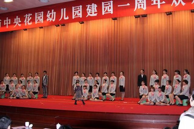 28日上午9:30,“中央花园幼儿园建园一周年庆典活动”在行政中心龙城大厅隆重举行。中央花园幼儿园全体中大班幼儿参与了此次演出,近900名师生、家长观看演出。