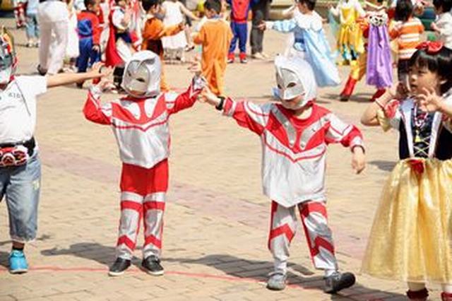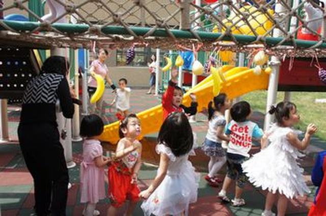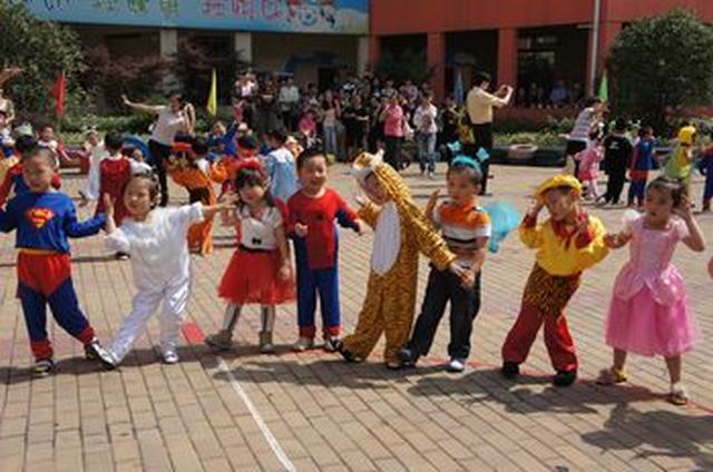 一大早,孩子们身穿各种卡通人物服装在家长的陪伴下兴高采烈来到了幼儿园。操场上、走廊里、教室里到处洋溢着欢声笑语。各