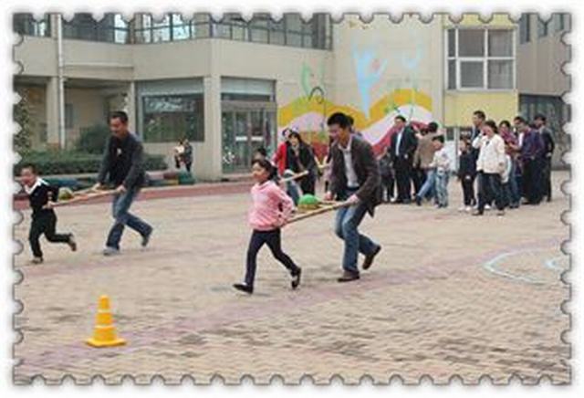 大班年级首先开展的数学活动《看图学习3的减法》,通过直观形象的图画信息,体验“走掉”、“还剩”的含义,让家长了解了幼儿园数学教学不同于家庭的方式;随后的运动会《运球绕障碍》和《我是小兵》主要展示孩子跳、跑、爬、平衡等运动技能,游戏《担架运西瓜》感受亲子间合作成功的喜悦,最后的亲子游戏《拔河》更是将活动推向了高潮,呐喊声一浪高过一浪,整个操场充满了欢声笑语。