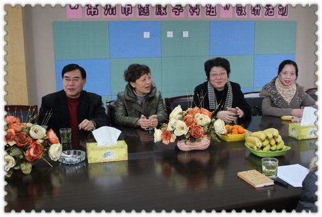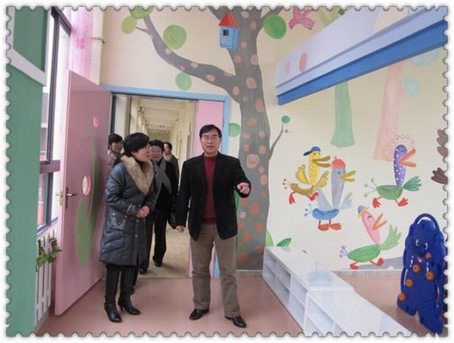2012年1月分园早教中心正式启用,常州市市政府副秘书长、市机关事务管理局局长李沛然,副局长邵邻,常州市人口计生委主任周广菊、副主任万美娟,常州市人口计生协秘书长恽虹等一行在杨腊凤园长的陪同下参观了亲子园环境,对亲子早教的园本课程和使用的配套音像资料等作了进一步了解。各位领导对我园亲子早教工作充分肯定,在明年机幼早教进一步发展上提出了目标和建议。