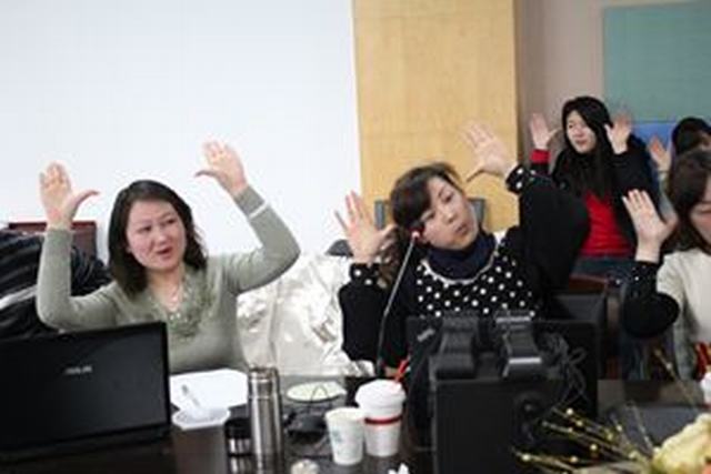 亲子教研活动在亲子问候歌声中拉开了序幕。两位早教教研组长段一奇和许丽敏,带领大家集体练习演唱了机幼早教自编的亲子歌曲,亲切而富有感情的演唱显得特别温馨。随后,亲子骨干教师张蕾和秦燕玲对全体亲子教师作亲子课程培训。她们从亲子体操和亲子音乐游戏活动的组织、动作的到位、音乐节奏感的引导等几方面对亲子教师作了详尽的指导。在教研中,还组织了亲子教育沙龙,亲子骨干教师就“亲子教育中如何对家长进行指导”的话题,大家共享亲子教育经验。