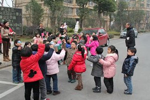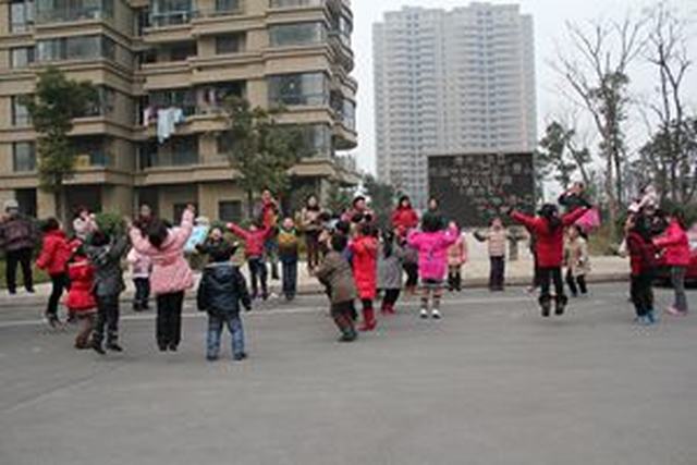 在中央花园社区的广场上,孩子们跟随着音乐边唱边跳,诵唱机关幼儿园原创的“德育歌”。社区的爷爷奶奶、叔叔阿姨都被吸引住了,纷纷驻足停留,认真观看。表演完后,孩子们还向社区的爷爷奶奶、叔叔阿姨发放了“德育歌”的宣传单。中央花园幼儿园的“小雷锋”们以传唱的形式向社区的大人们宣传社会公德,赢得了社区大人们的赞扬,大家纷纷表示要和孩子们一起“学雷锋、树新风、讲文明”。