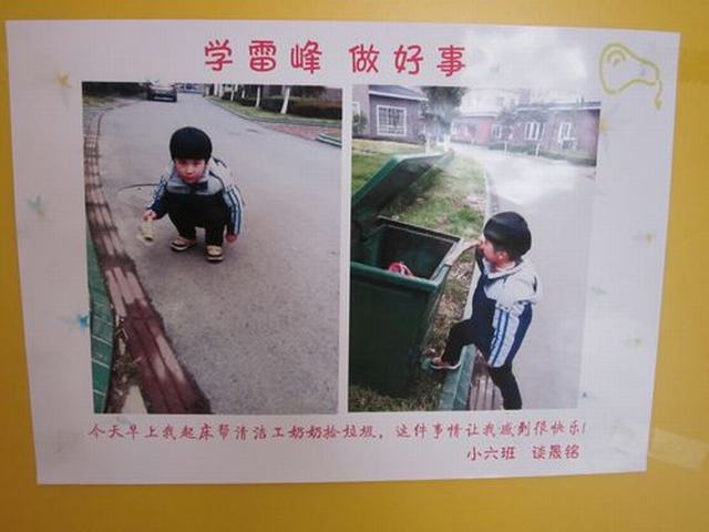 “学习雷锋好榜样……”这充满热情、斗志昂扬的歌声将回荡在幼儿园里、社区里、我们小朋友们的心里。