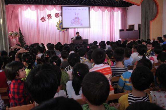 在幼儿园的小剧场,医生叔叔首先通过生动形象的卡通PPT让小朋友们了解牙齿的成长过程,知道龋齿形成的原因及影响牙齿健康的常见现象,懂得了口腔保健的意义和重要性;接着,运用模型向小朋友们介绍牙齿的构造和名称,切牙、尖牙、磨牙的位置和作用;最后,还和小朋友们一起探讨刷牙、漱口的正确方法。
