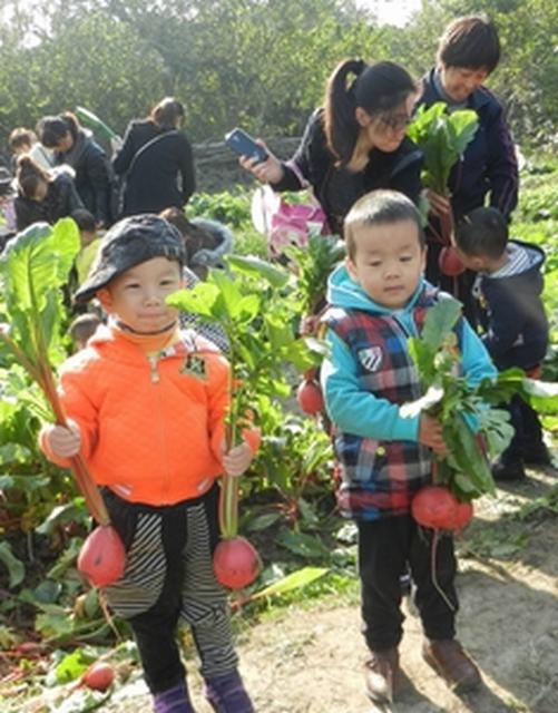 装好萝卜,大家将它送回农家,也是制作常州萝卜干的五代传人黄国明师傅家。黄师傅带大家了解常州的特产——“萝卜干”的制作过程,从切萝卜、晒萝卜、腌萝卜到品尝黄师傅亲手做的萝卜干,那地道的常州风味,给老师、家长和宝宝们都留下很深的印象!