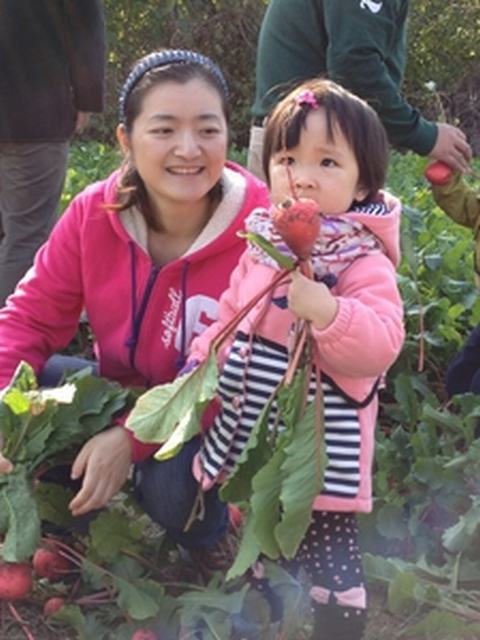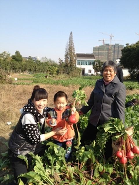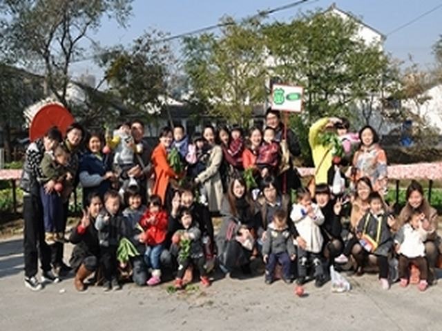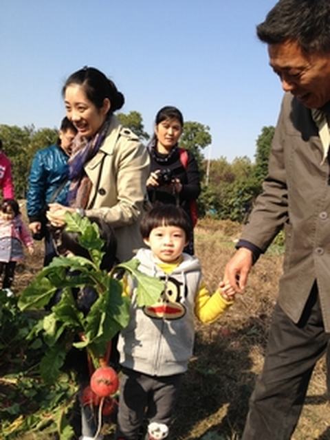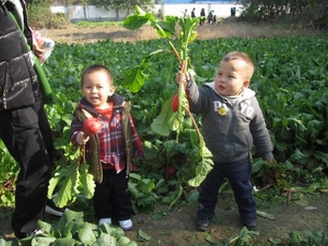 在这里,一路上孩子们欢快得像小鸟,叽叽喳喳地讲个不停,问个不休,宁静的菜园一下子热闹起来了。以往一向要抱在手里的娇宝宝也变样了,踩着田埂小道,认着各种各样菜地里知名或不知名的蔬菜,大家手中的相机一刻没停过,赶紧要把这精彩的瞬间抓住,快乐就写在家长和宝宝们脸上。