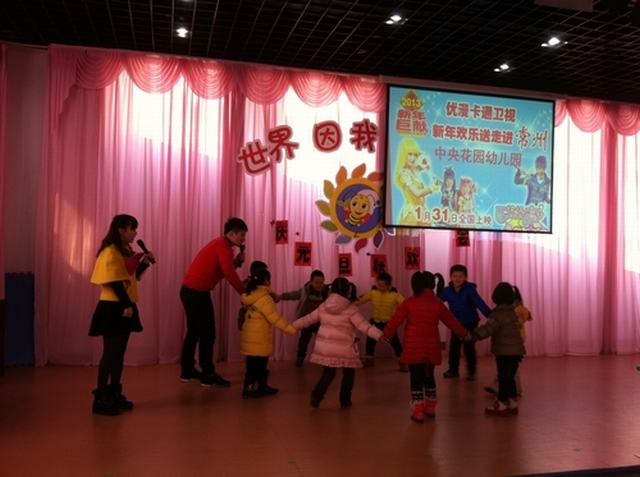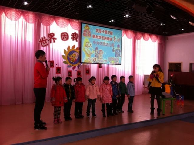 2013年1月8日下午2点,江苏卫视“优漫卡通”栏目组新年欢乐送走进了中央花园幼儿园,给孩子们带来了新年的第一份礼物。