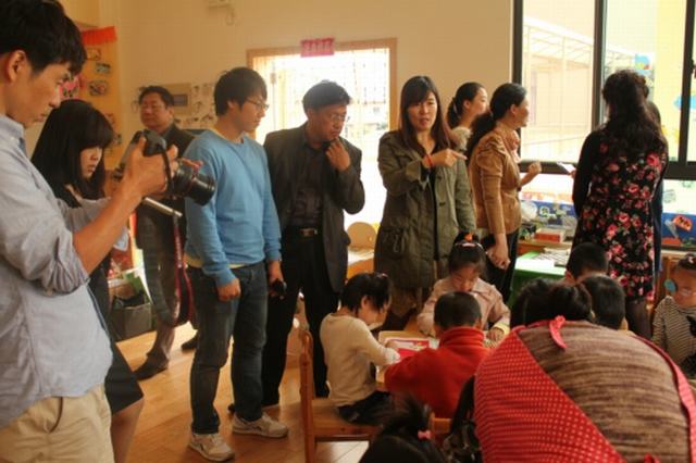 2013年10月24日下午,韩国南杨州市民代表团一行跟随市外事办领导来到中央花园幼儿园参观访问。