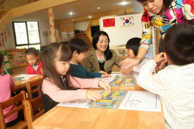 在执行园长张红的陪同下,代表团成员参观了中央花园幼儿园美丽宽敞的校园环境、配备齐全的专用教室、设施先进的游泳馆和多功能厅;观看了大操场上孩子们的轮滑运动,感受到中国孩子健康阳光的自信风采;走进了大五班,与孩子们进行了两国国旗绘画、亲密合影的愉快互动。在参观的同时,张园长向来宾们简单介绍了中央花园幼儿园的办园理念、发展概况以及课程设置等情况,与韩国友人就两国幼儿园招生、课程文化、幼儿评价、以及家园互动等进行了深入交流。