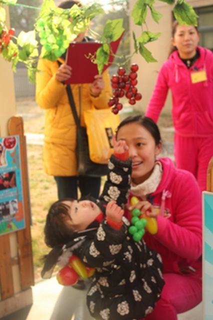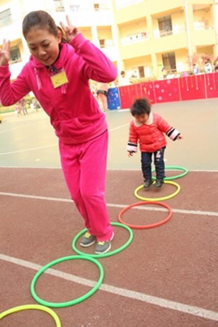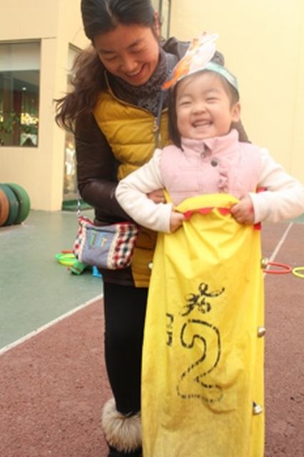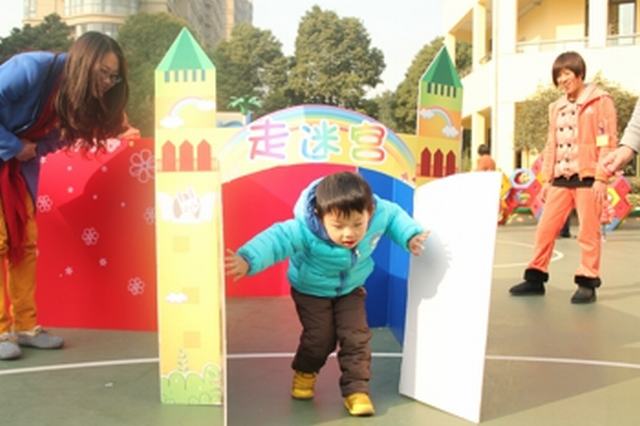 活动当天,原本9:00开始的游园会8:20左右家长就带着宝宝迫不及待地参加。教室里,宝宝在家长的带领下搭积木、玩玩具,参加丰富多彩的区域游戏;操场上,宝宝们走迷宫、钓小鱼、玩跳袋、摘果子、玩滑板、还戴上小乌龟的头饰体验了情境性体育游戏——小乌龟运粮食;专用室里,在老师的专业指导下,宝宝体验了美劳室的绘画、图书室的阅读、亲子室的游戏、生活实践坊的美味,兴趣浓厚、流连忘返。