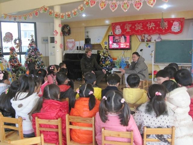 课堂上,麦克斯首先向小朋友们进行了自我介绍,接着介绍了在法国如何过圣诞节。结合制作唯美的PPT,麦克斯还具体讲述了圣诞前夕每个家庭如何准备,圣诞平安夜如何庆祝,圣诞老爷爷在平安夜做些什么事情,圣诞当天如何庆祝……轻松活泼的异国上课方式带给了孩子不一样的体验,他们时而欢笑,时而发问,时而欢呼,气氛非常热烈!最后,麦克斯叔叔还给小朋友们准备了巧克力礼物,并和孩子们合影留念。孩子们度过了愉快而又收获颇丰的半天!