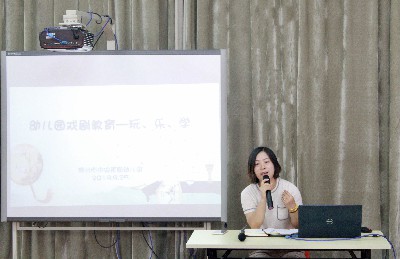 9月25日下午由教务室韦明霞组织了现场教研《幼儿园戏剧教育玩、乐、学》,刘红竹和胡菁老师根据暑期丹麦培训选择了合适的内容对老师进行了再培。《报数游戏》、《汽车嘟嘟嘟》和《森林里的小女孩》的片段表演,老师们通过听、说、猜、演等不同形式体验合作游戏的快乐与默契,现场多样的表现方式和积极投入的状态让跟岗的园长们也忍不住加入其中亲身感受。