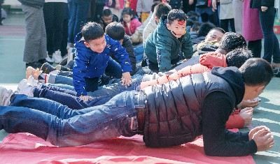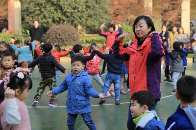 12月16日上午,踏着冬日暖阳,爸爸妈妈们和小朋友们一起高高兴兴来上幼儿园。我们一起在教室里朗诵表演,我们一起在操场上玩游戏、做早操,我们一起参加中班亲子活动。
