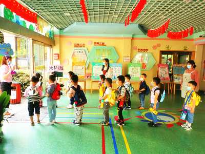 迎着夏天里的温暖阳光,老师们早早就等候在园门口,迎接归来的孩子们!疫情后的开学第一课,老师和孩子们一起了解疫情知识、防疫技巧,复习七步洗手法,正确戴口罩,认识体温计等等,科学认识病毒,增强安全防护意识。放学时刻,家长在指定区域间隔一米排队等候,老师们组织幼儿有序排队,与家长一一对接,家长接到幼儿后按指示路线有序离园。