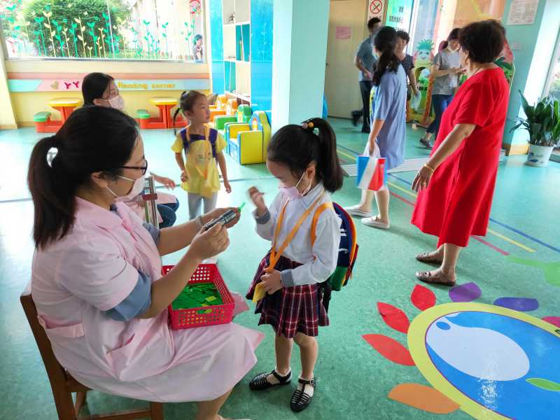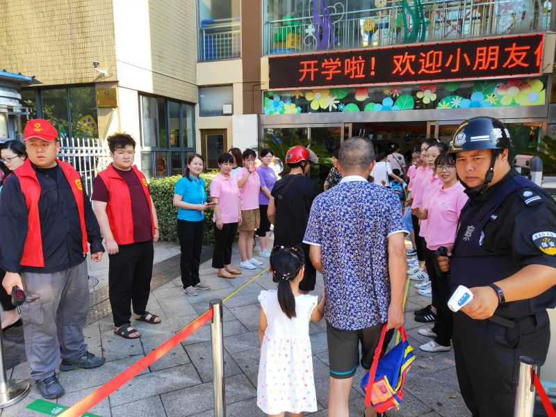 2020年9月1日,开学第一天的早晨,在园长妈妈的带领下,各级组的老师们、保安、家长护卫队都早早地等在幼儿园的大门口,微笑着迎接每一位幼儿的到来。