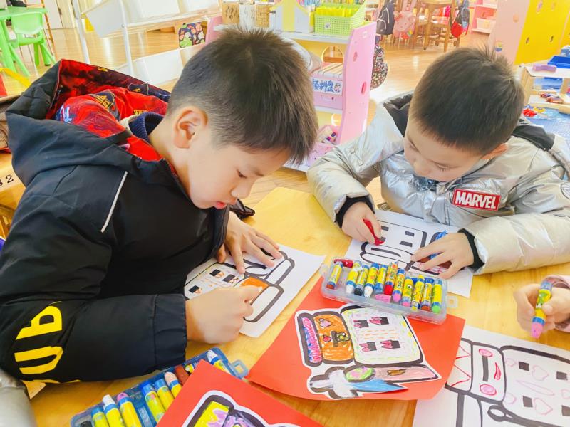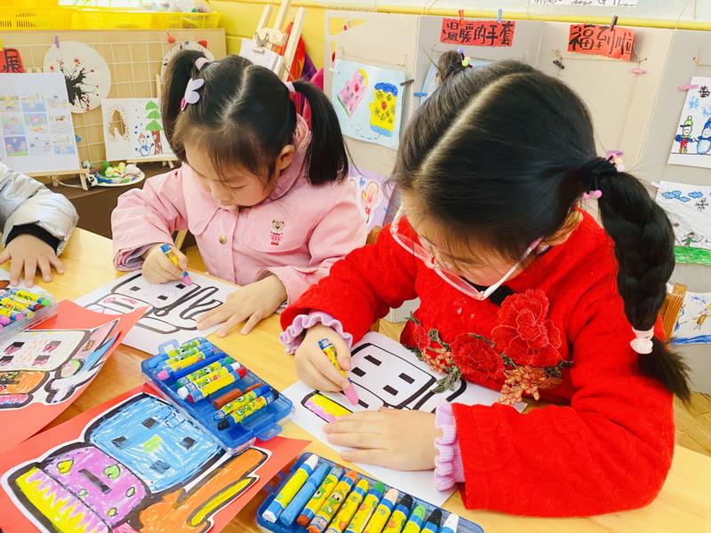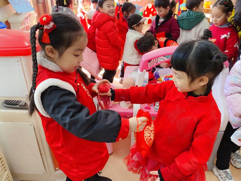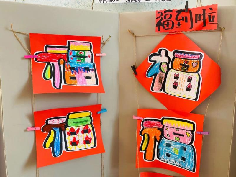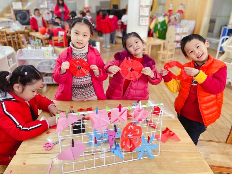 作为大哥哥大姐姐的大班孩子以“做爆竹、剪窗花、写福字、点梅花”为主线,孩子们发挥自己的想象力和创造力,在相互的祝福声中获得自信、感受成长。