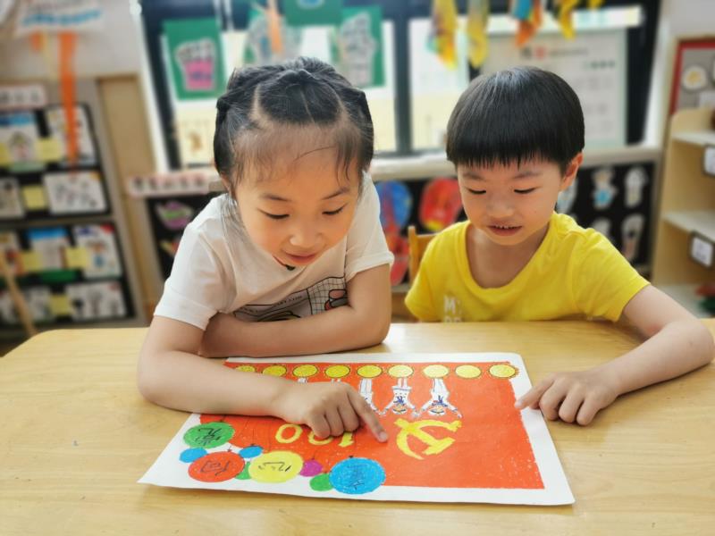 爱国爱党教育从娃娃抓起。老师们以生动有趣而浅显易懂的话语向小朋友们讲解党旗、党徽以及国旗的特点和含义,将爱国爱党的种子植入孩子的心中。