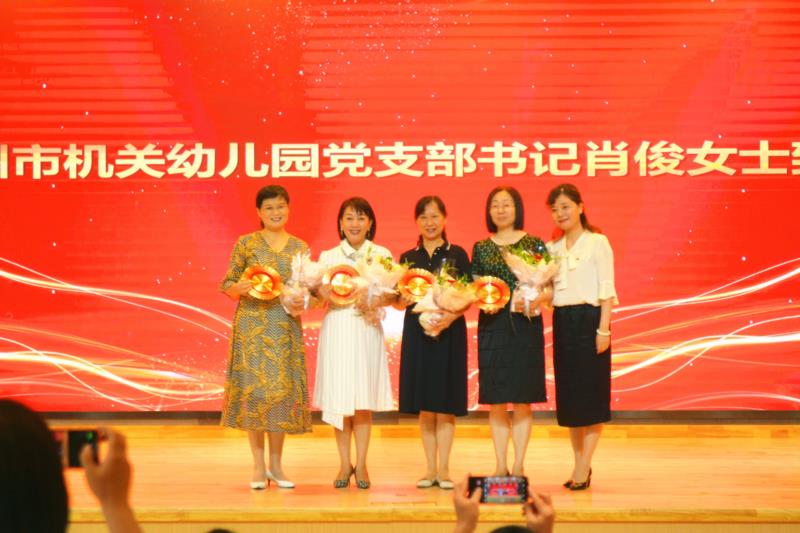 4.机幼党支部书记肖俊为老教师们送上纪念盘,感恩她们不忘初心,潜心育人的教师生涯!