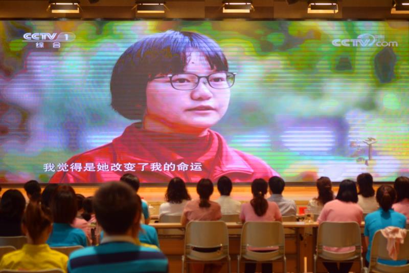 在观看张桂梅老师的先进事迹的视频后,老师们唱响《和你一样》的歌声,活动拉开了帷幕。