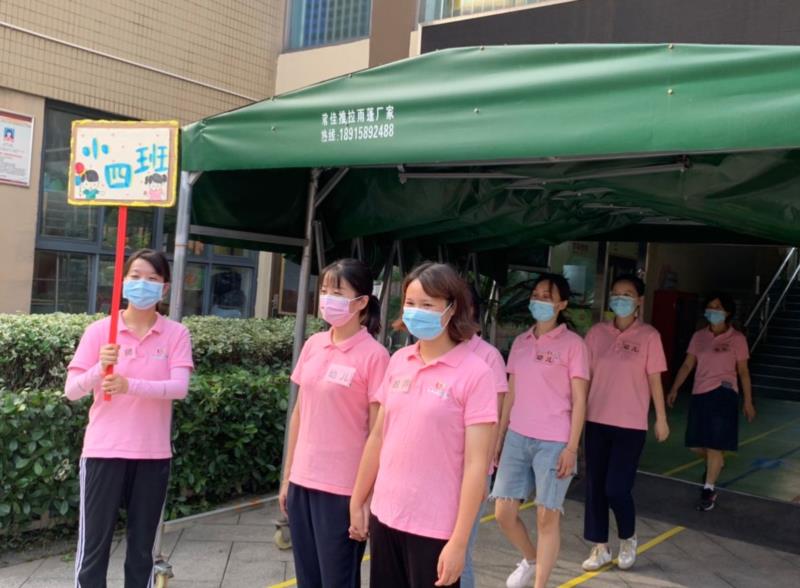 入园前,教职工入园需出示健康码、行程码,在门口全体教职工测量体温并做好无接触登记,体温正常方可入园。我园实行“错时错峰”的入园离园原则,入园时实行“分隔离、分时间段”入园。家长从离园通道离开,不进入园区。体温正常的幼儿方可入园,看清地标颜色进入班级。