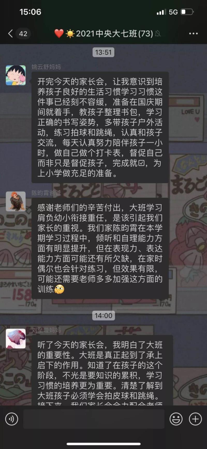 大班是孩子们在幼儿园学习生活的最后一年,也是孩子们幼小衔接十分重要的一年。在“双减”政策的影响下,为帮助孩子形成进入小学必备的关键品质,对家长作出科学的育儿指导,9月28日,中央花园幼儿园大班年级组召开了线上家长会,共同探讨大班幼儿好习惯的培养方式。