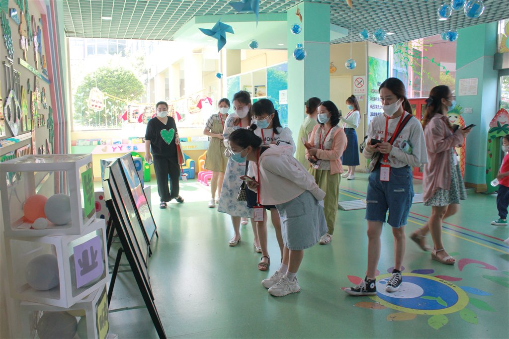 在执行园长王莉明的带领下,老师们观摩了幼儿晨间户外活动、班级区域自主游戏,并针对幼儿游戏中的亮点和问题进行了探讨交流。