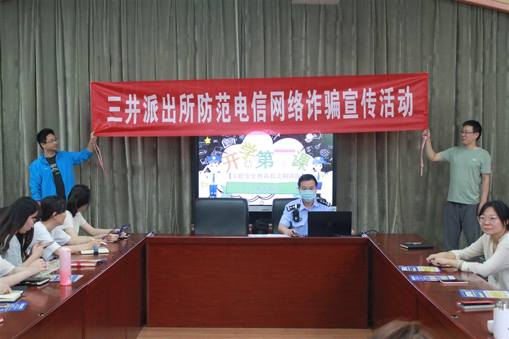 三井派出所谢警官为全园教职工进行了法制宣讲、反电信诈骗课程培训,并详细举例剖析了几起电信诈骗案例,提高了大家的反诈骗知识水平。