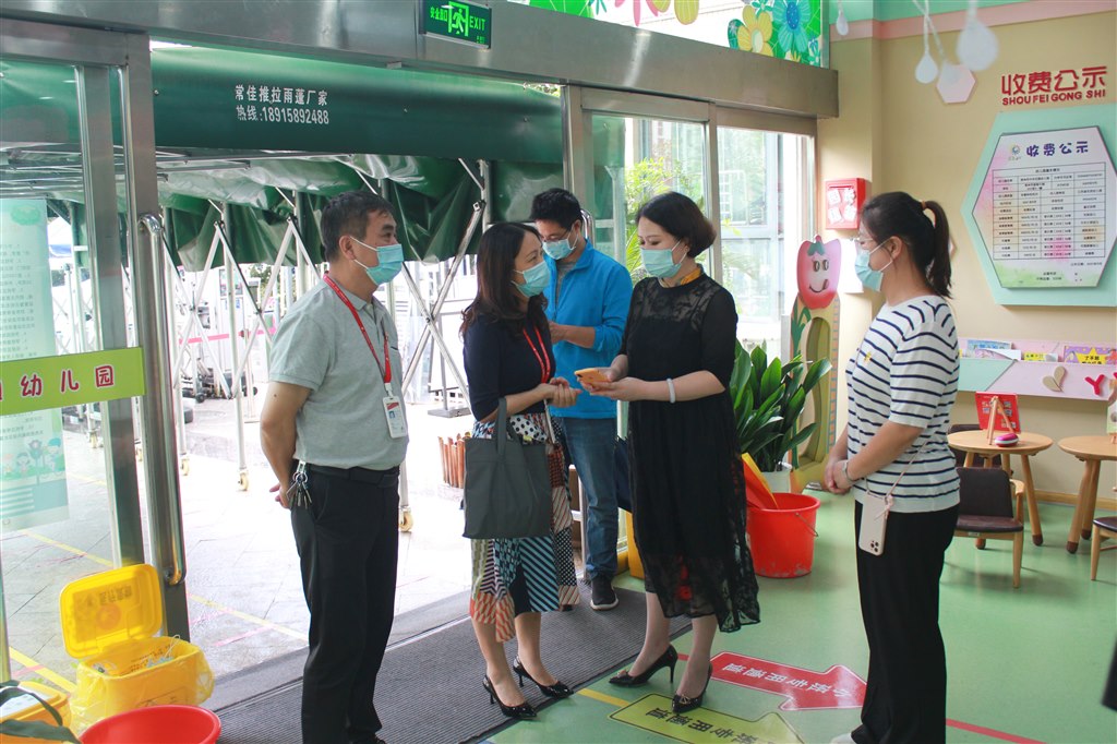 为安全、平稳、有序地推进幼儿园秋学期开学工作,由新北区派出所、安监、市监、卫生院、综治、三井街道六个部门组成的检查小组以及天宁区市场监督管理局工作人员走进中央花园幼儿园进行校园安全工作督查,中央花园幼儿园执行园长王莉明陪同检查验收。
