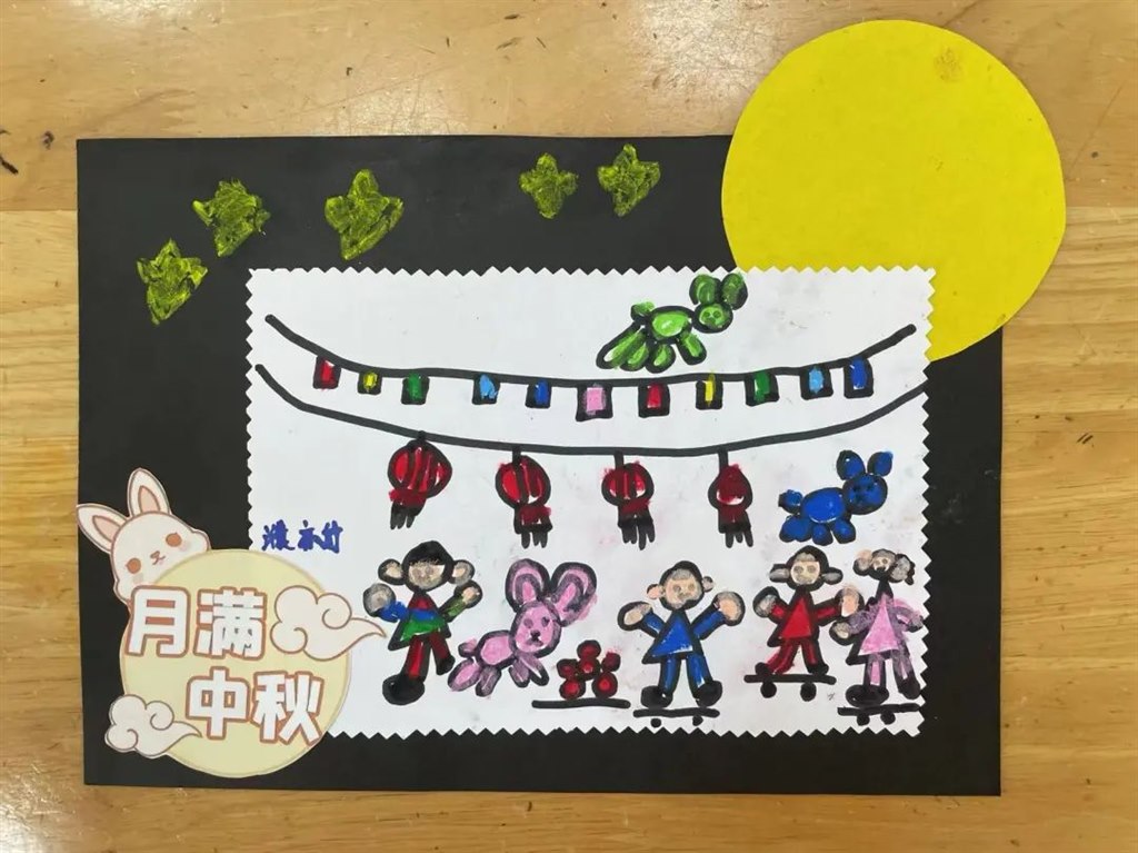 1.制作中秋节祝福明信片向远方的家人表达思念(周妍婧)。