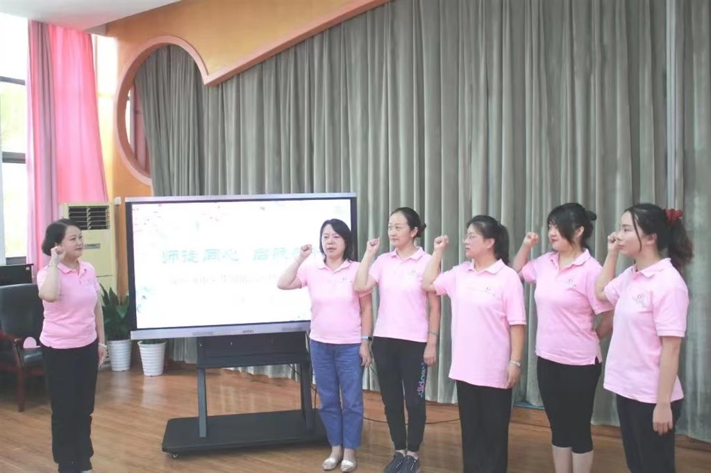 师父团队和徒弟团队各自宣誓。一句句庄重的誓言,代表着对教育