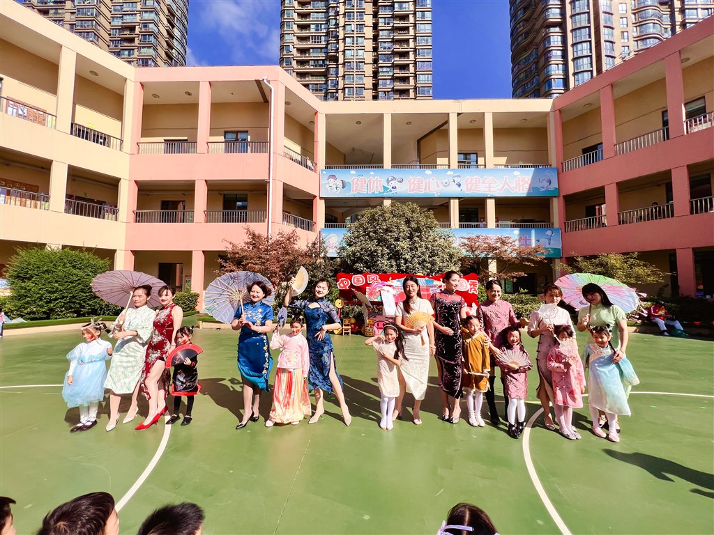 为了让小朋友们置身于中国传统文化的氛围之中,老师和家长志愿者们为孩子们准备了一系列精彩的演出:多彩服饰秀、经典国风舞、趣味抖空竹、旗袍风采秀、歌唱祖国情,老师也上台献上了精彩的演出。