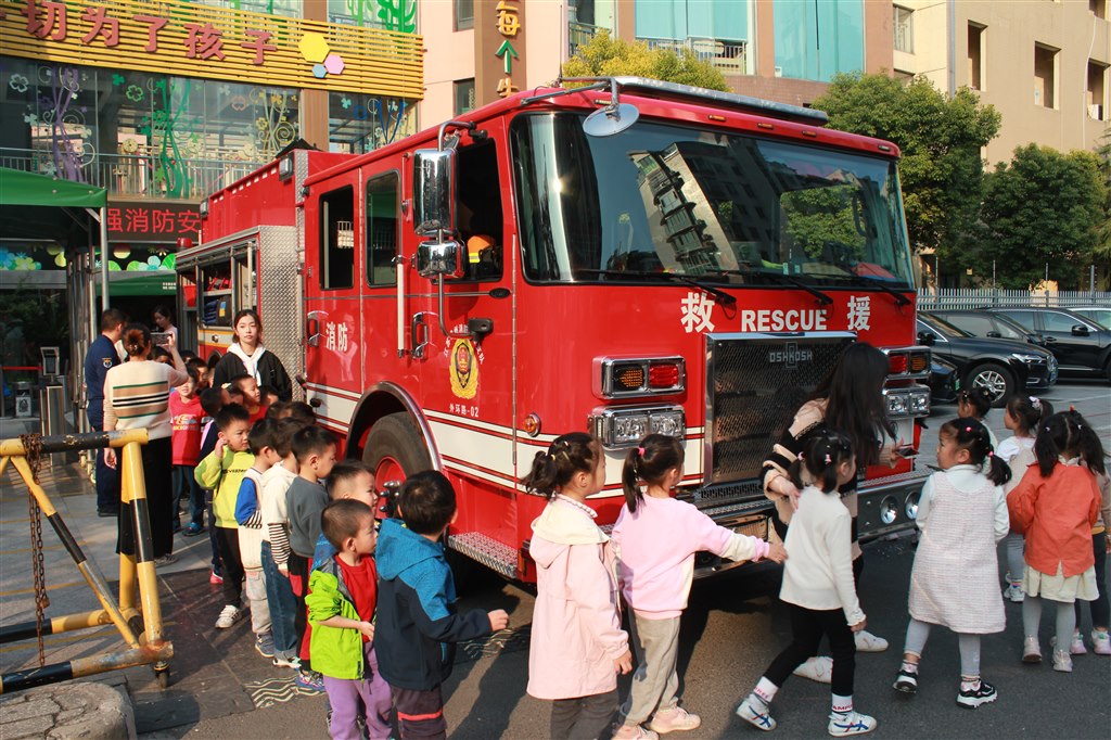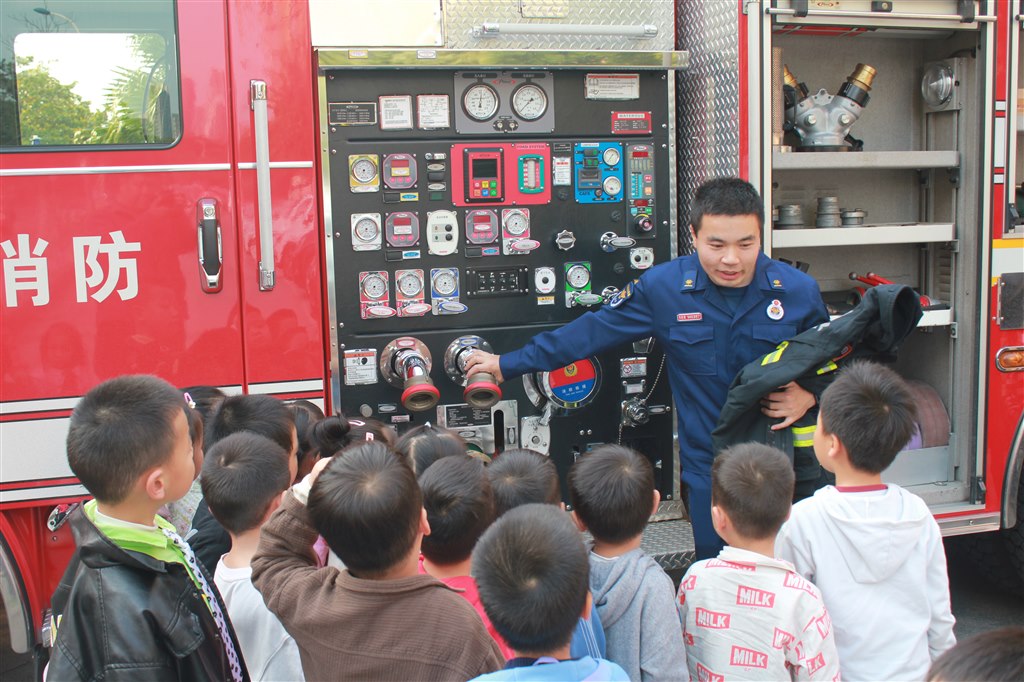 消防员带领小朋友们参观消防车,帮助幼儿更好地了解各种消防器材,增长了消防方面的见识。