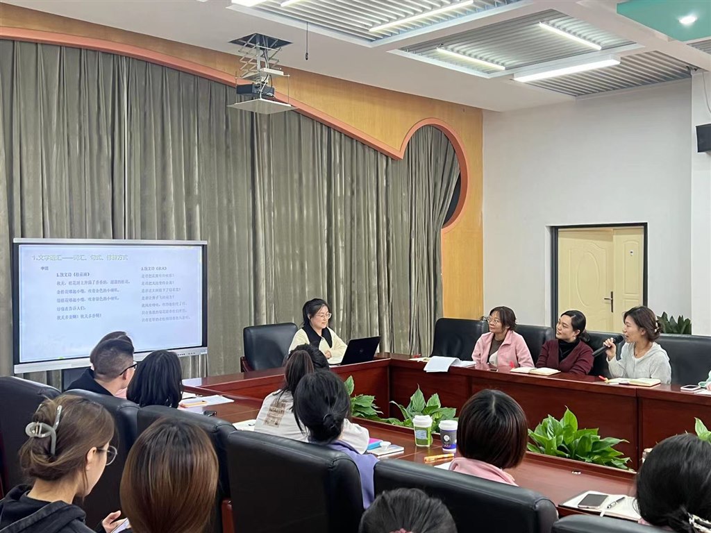 教师们还进行了现场体验式互动,每个年级组代表教师,进行散文诗即兴诵读磨炼。老师们感情饱满、真挚,音韵抑扬顿挫,展现了?声?润之美。
