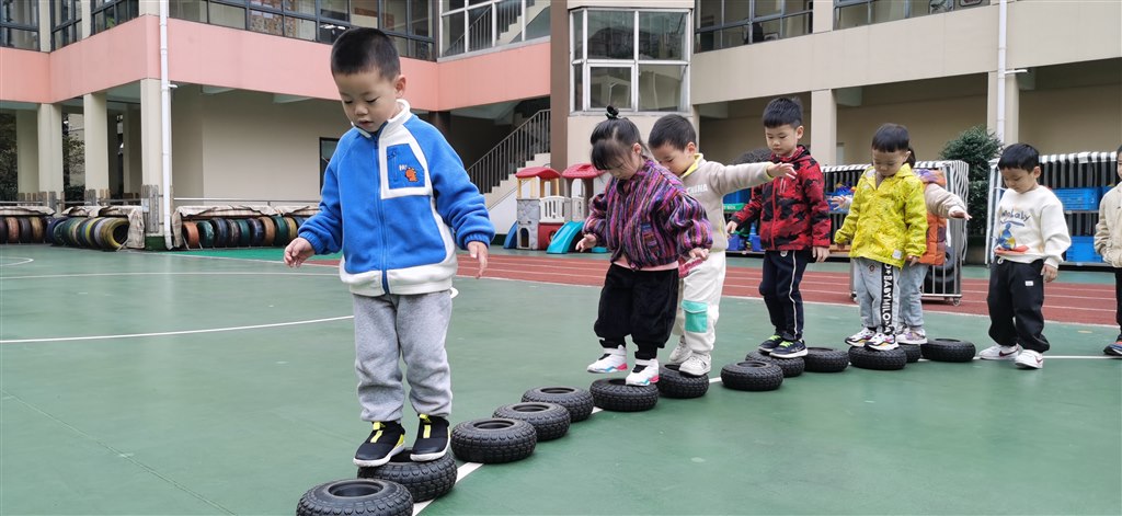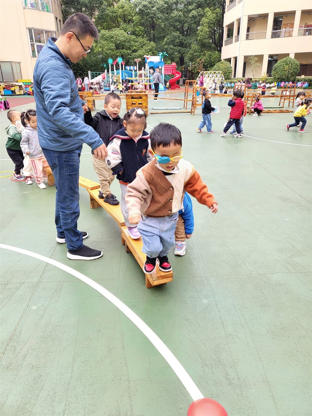 户外活动时间是孩子们每天最期待的时刻。每天都会有不同的游戏等着我们,跳圈、玩垫子、拍皮球、小轮胎、平衡木、梯子,这许许多多的玩具都有很多不同的玩法。