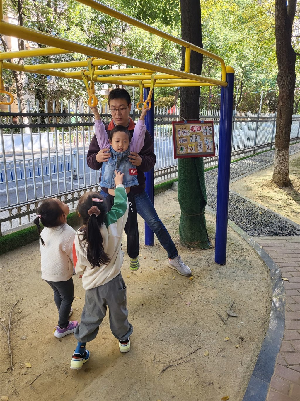 把自己吊起来像个小猴子一样,你试过这种感觉吗?我们在老师的帮助下成功吊在了上面,成为一支开心地小猴子啦!