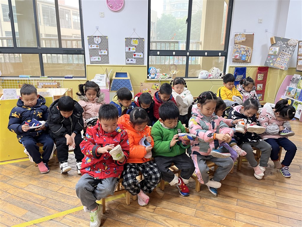 我们开展了谈话活动,孩子们初次真正地认识了鞋子,开始去了解鞋子的结构。