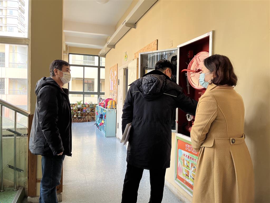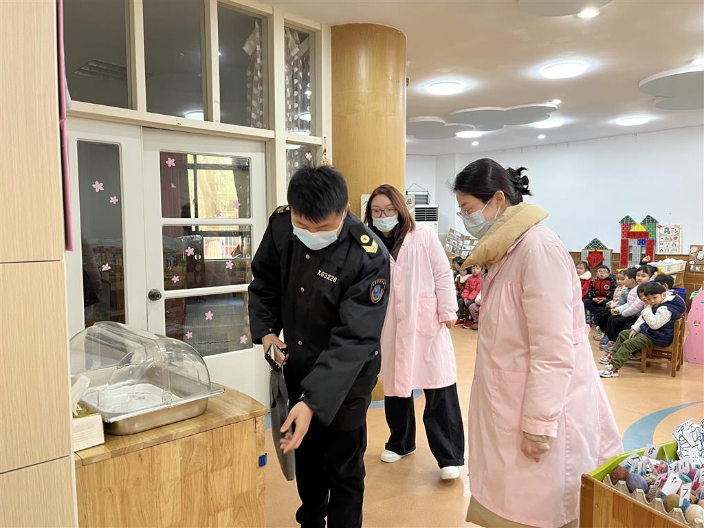 为确保2023年春学期开学工作安全有序进行,由新北区教育局督学、天宁区市场监督管理局工作人员以及派出所、安监、市监、卫生院、综治、三井街道组成的检查小组相继走进中央花园幼儿园进行校园安全工作督查,执行园长王莉明陪同检查验收。