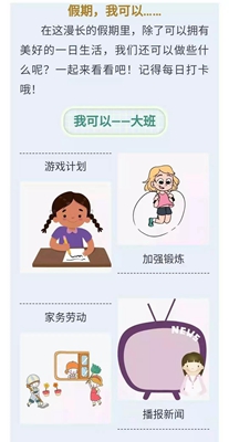 疫情期间,机幼教育集团“幼儿寒假生活指导小组”结合幼儿的年龄特点,优选适宜的素材,开设了“游戏指南”、“阅读指南”、“为爱朗读”、“与爱同行”四个专栏,坚持每天在各园区公众号上推送两条微信,目前已经进行到第二阶段。针对前两个阶段实施中出现的问题,小组成员及时研讨,从选材的内容、专栏的特色及种类、推送的频率上进行了优化,本周六起将开展第三个阶段的寒假生活指导。