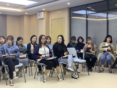 10月15日,庄老师再次来到机关幼儿园,以“绘本资源探析”、“游戏化环境”为主题开展浸润式教研,讲座与现场相结合,理论与实践相结合,展开了一场关于课程环境的行与思。项目组成员走进各班,观摩课程环境、幼儿游戏、师幼互动。最后,大家就现场观摩后的所见所思进行智慧碰撞,庄老师对老师们的发言及各班区域环境情况进行梳理并提出指导建议,她指出,绘本、自然物等丰富多样的课程资源能够支持幼儿在多样化游戏活动中自主探索、行动学习、建构经验和获得发展。这种积极建构“儿童本位”的活动环境,不仅顺应了幼儿的兴趣与需要,关注幼儿学习与发展的整体性,还能帮助教师在课程实施中得到专业滋养和发展,让幼儿成为活动的主人,在灵动的课程中自然地学习成长。