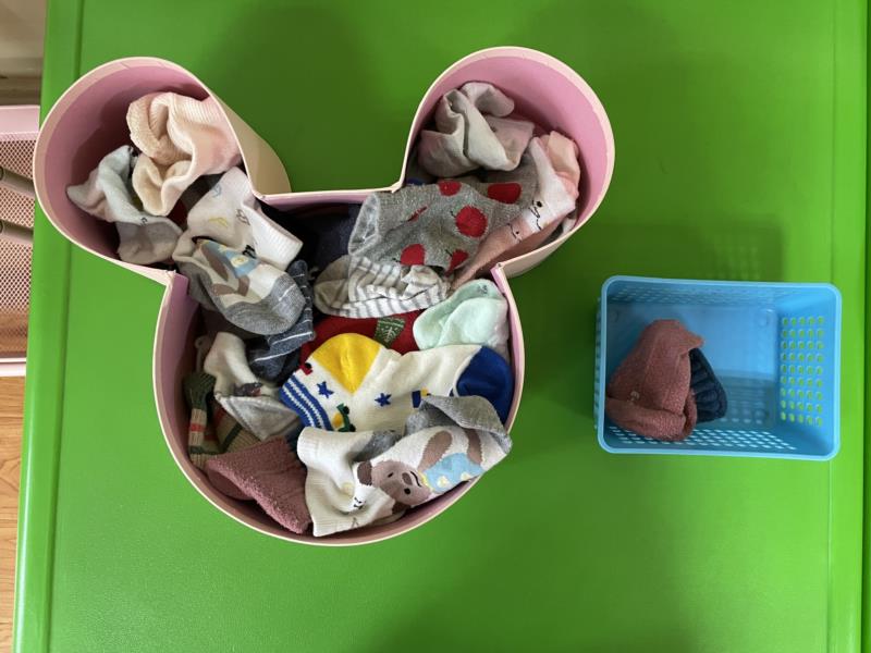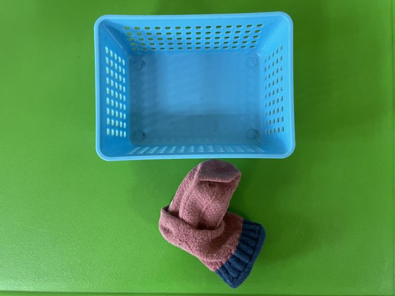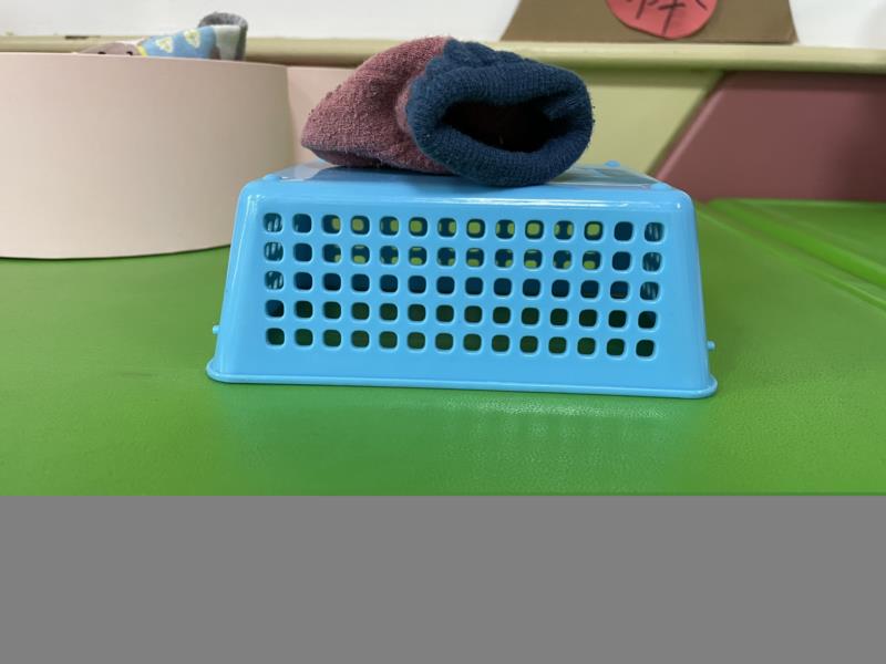 2.尝试运用“袜子在x x的上面下面"、“袜子在x x的里面外面”来描述袜子的位置。