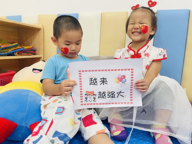 1. 能在教师的语言示范下,学说“国旗国旗我爱你"句型