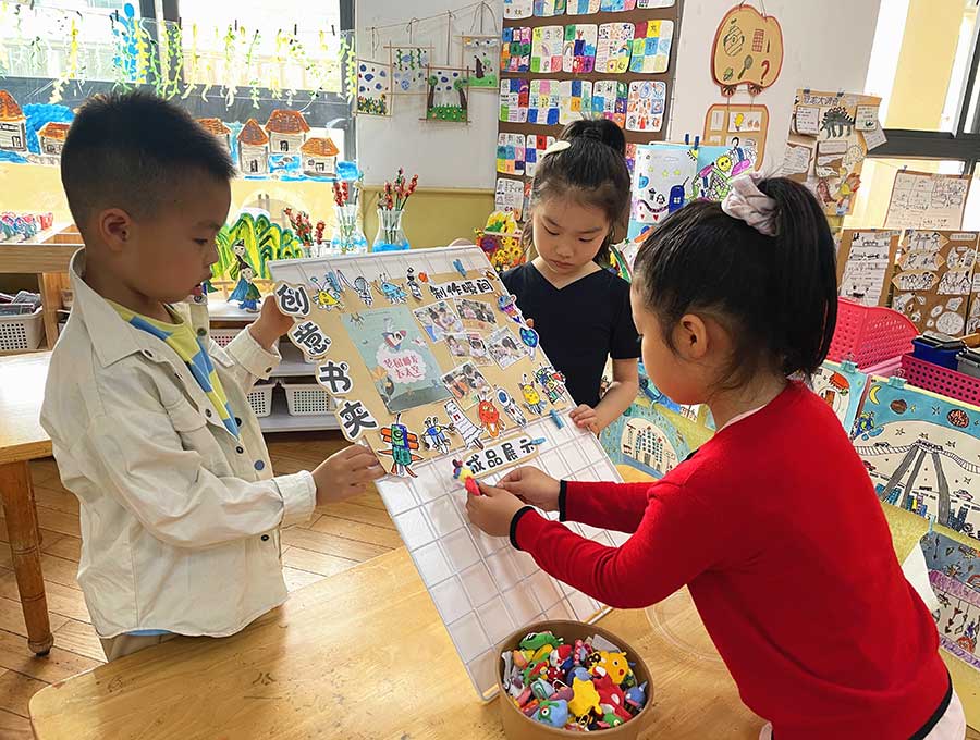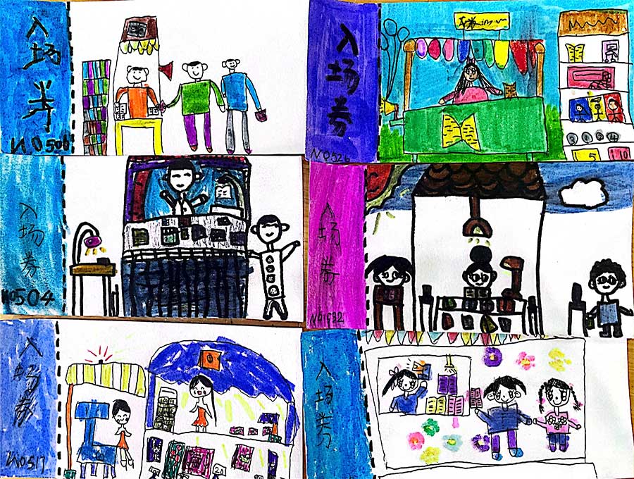 在图书义卖活动开展前期,幼儿开展了丰富多彩的预热准备活动。中大班幼儿设计了“跳蚤市场”图书义卖活动入场券,让小班幼儿也能参加图书义卖活动。幼儿还自制独特绘本阅读伴手礼,感谢图书小顾客们的爱心。幼儿精心设计了摊位牌,以及价目表,介绍义卖的图书,简短的标语吸引着眼球,小小的海报充满着暖暖的爱意。幼儿和家长还一起收集了义卖图书,同时为了邀请家长志愿者们的帮忙,迎接家长们的到来,孩子们还制作了漂亮的邀请函。