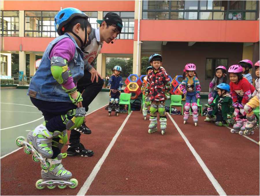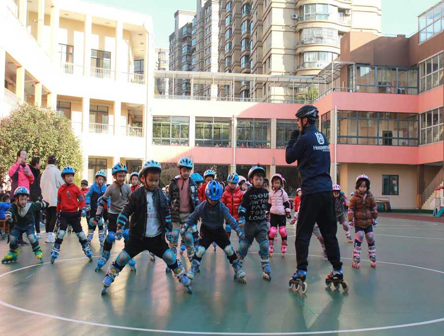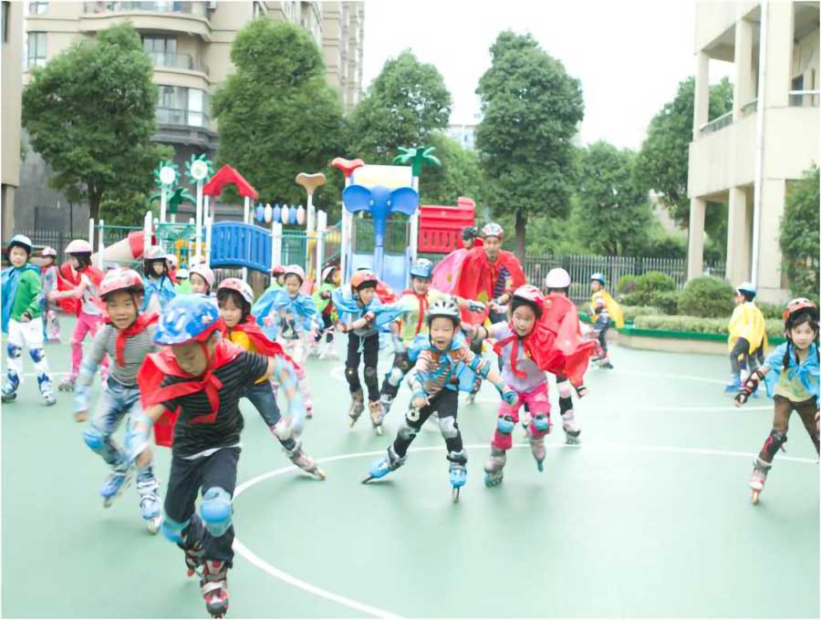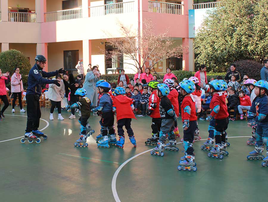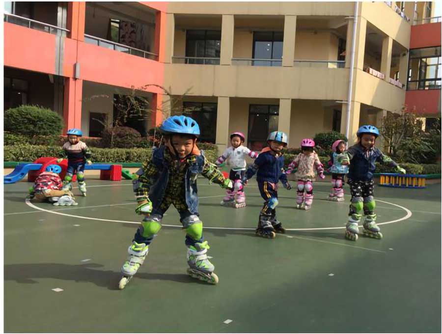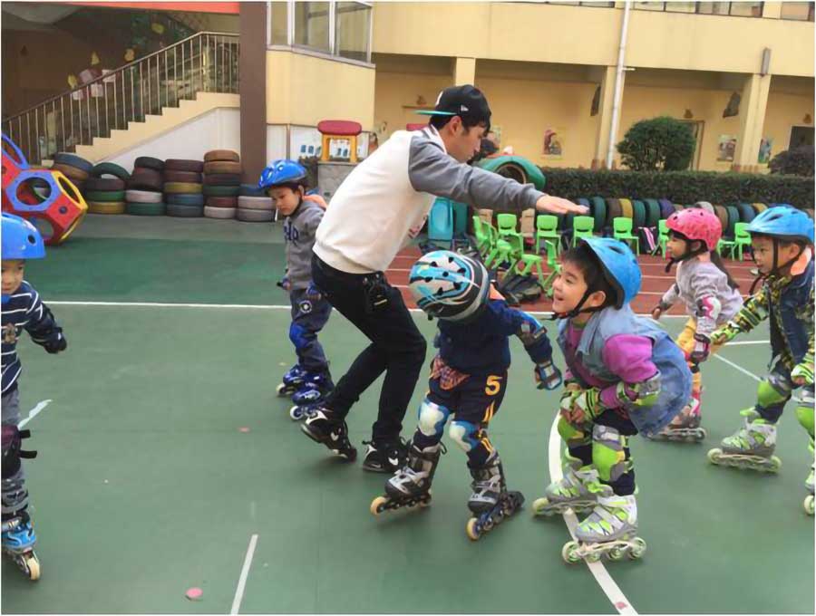 邀请专业教练带教,每周1—2次轮滑训练。增强幼儿各关节的灵活性,提高平衡能力,同时增强臂、腿、腰、腹肌肉的力量。在参与轮滑活动中磨练幼儿毅力,培养幼儿勇敢、坚强与哪里跌倒哪里爬起来的精神!
